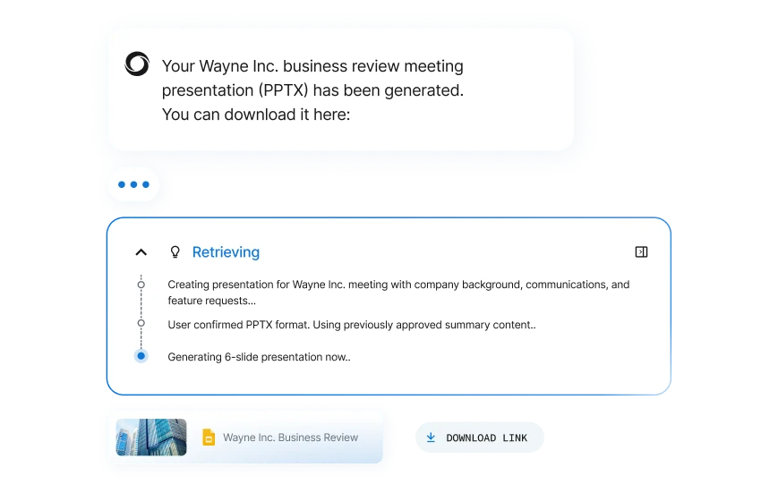 From prospecting to renewals, enterprises remove friction from critical seller workflows, helping reps stay informed, on-message, and ahead of every customer touchpoint.